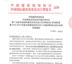 2018-2019年度中國建筑裝飾行業十大最具影響力設計機構